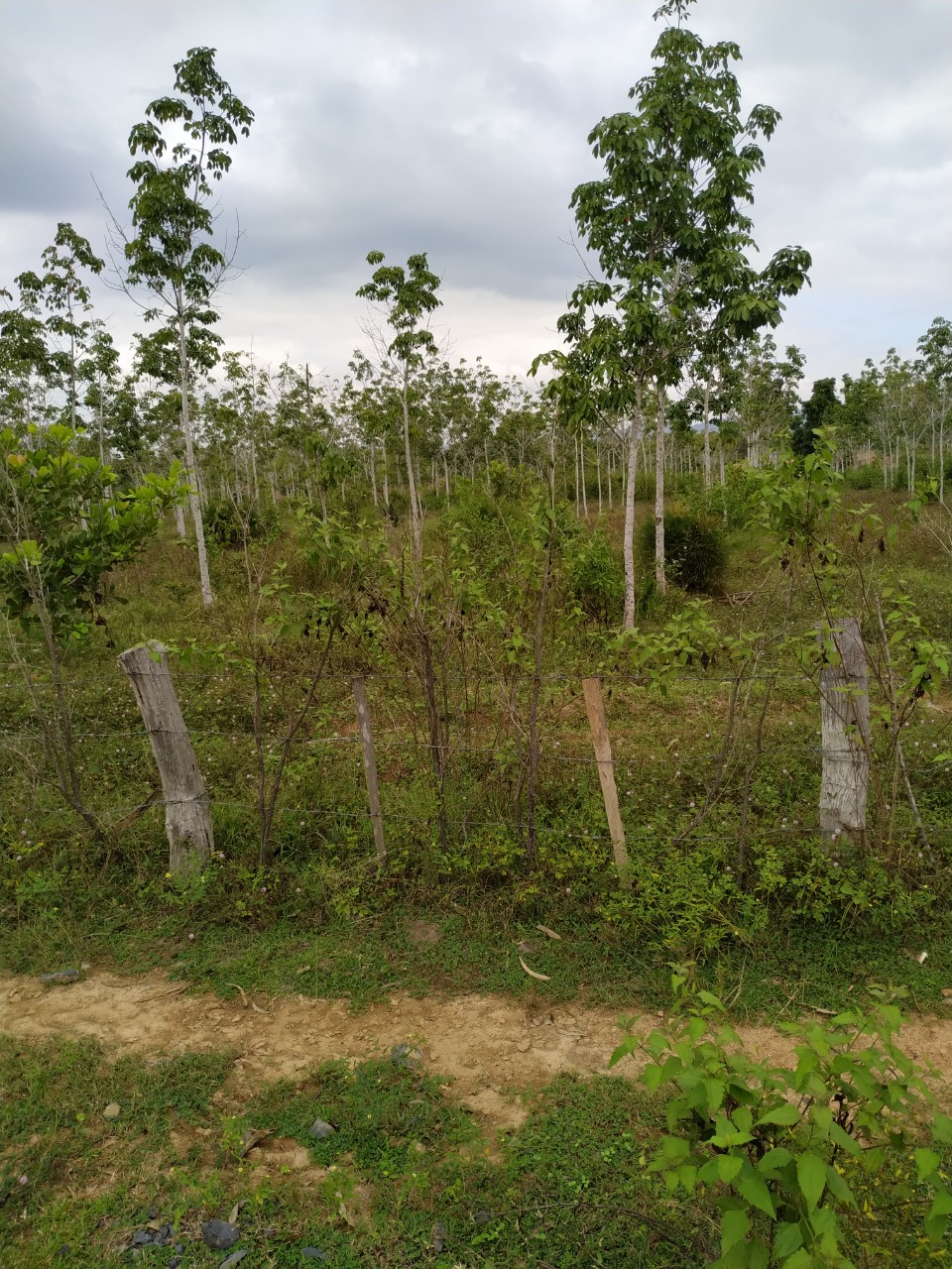 Trên đất hiện đang trồng cây cao su, đã rào lưới kẽm gai xung quanh lô đất.
